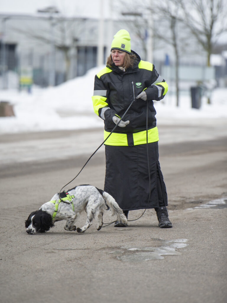 Vi utför läcksökning efter misstänkta läckor på naturgasledningar, där hunden söker efter ämnet som tillsätts i naturgasen, eftersom metangas, som är naturgas finns i vår omgivning ute i naturen så utbildas inte hunden att söka efter metangasen.